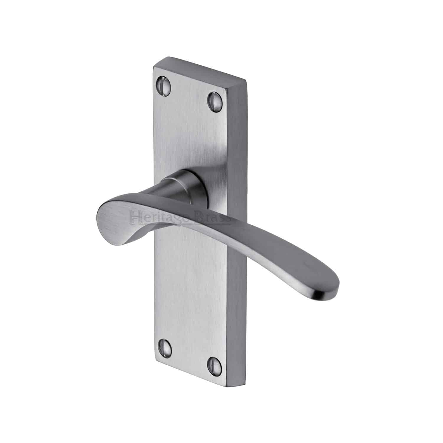 Heritage Brass Door Handle Lever Latch Sophia Short Design Satin Chrome Finish