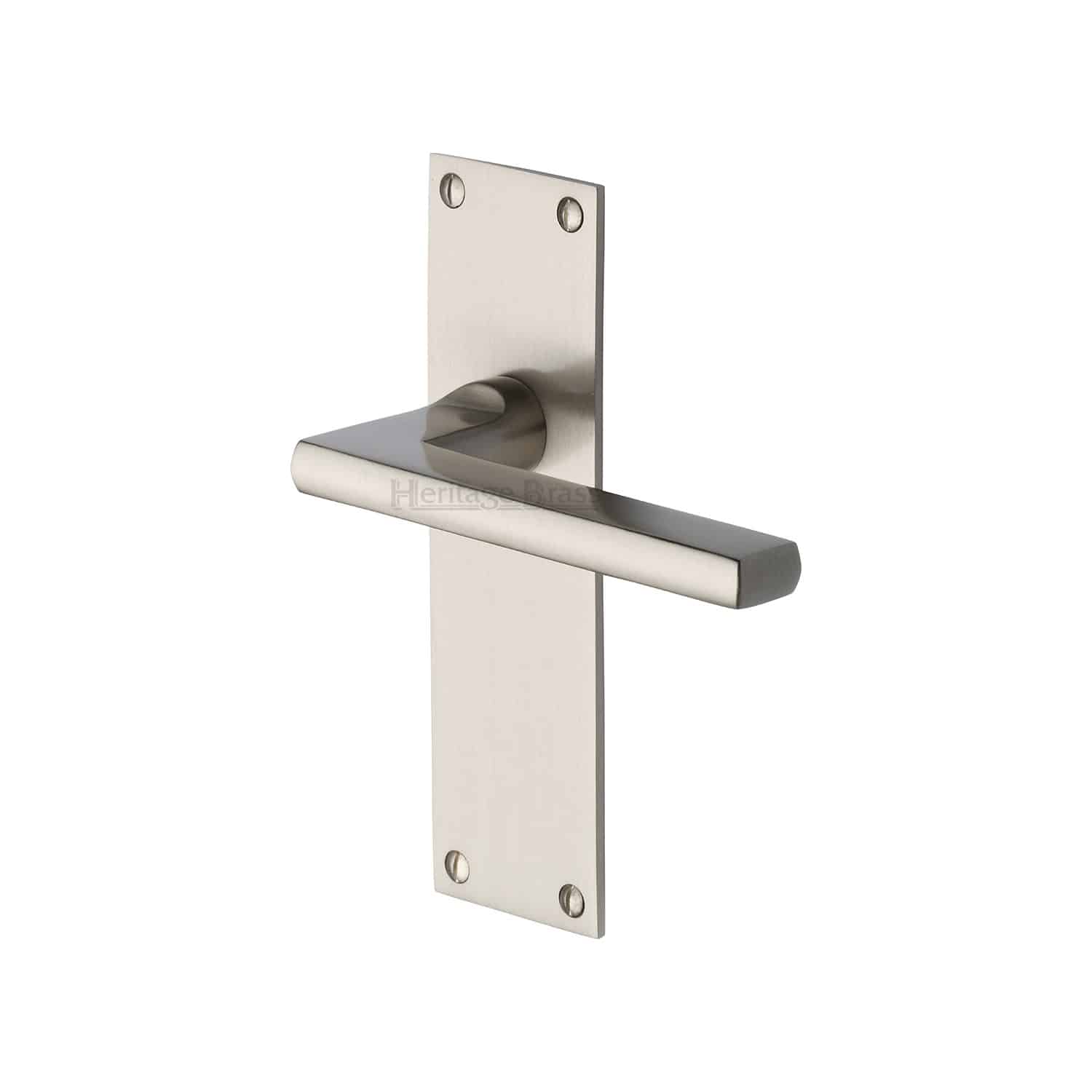 Heritage Brass Door Handle Lever Latch Trident Design Satin Nickel Finish