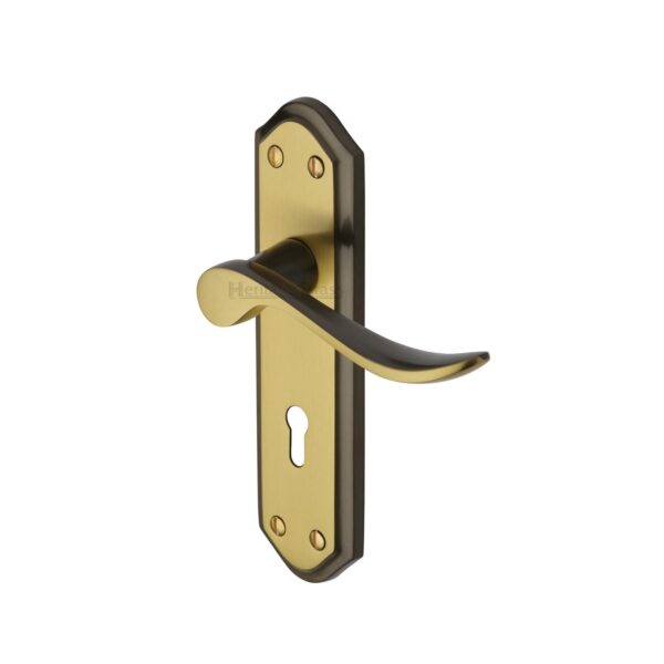 Heritage Brass Door Handle Lever Lock Sandown Design Patina Finish