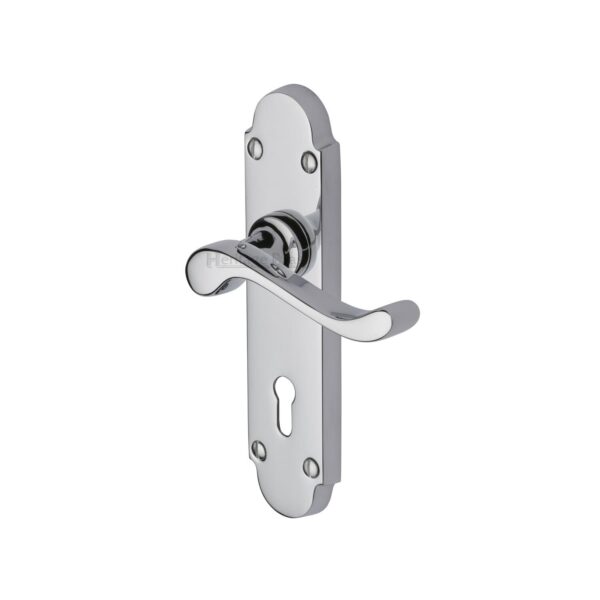 Heritage Brass Door Handle Lever Lock Savoy Design Polished Chrome Finish