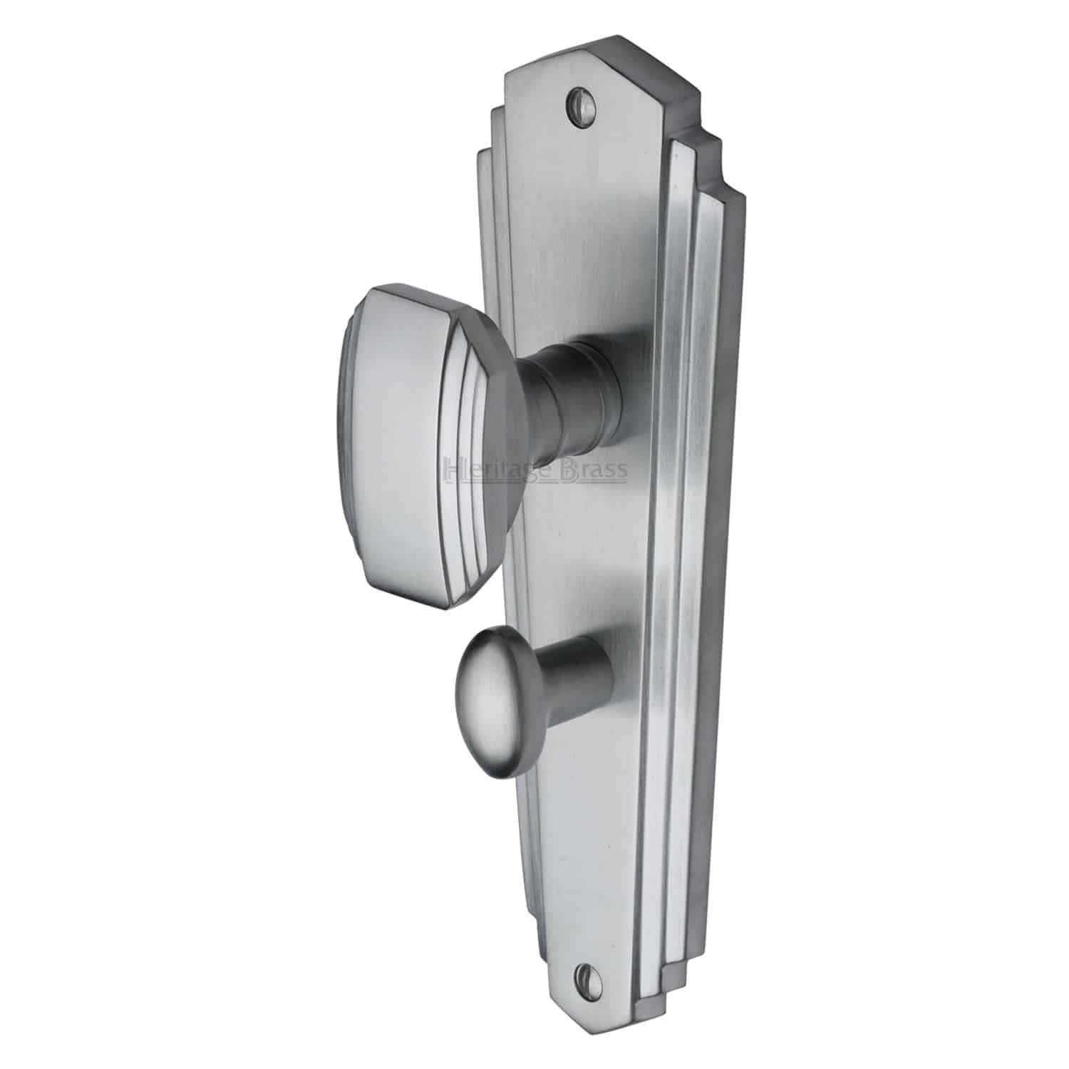 Heritage Brass Mortice Knob on Bathroom Plate Charlston Design Satin Chrome finish