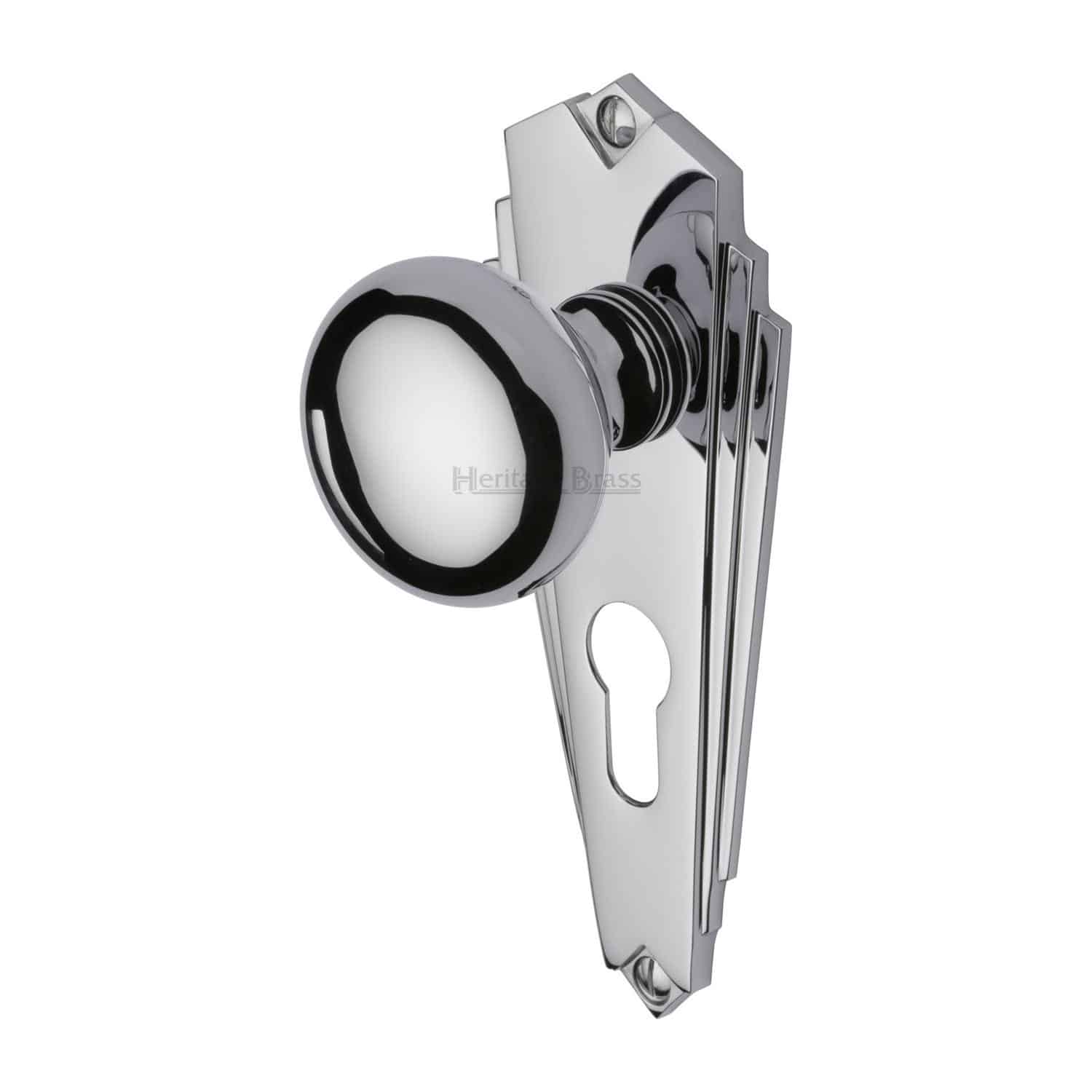 Heritage Brass Mortice Knob on Euro Profile Plate Broadway Design Polished Chrome finish