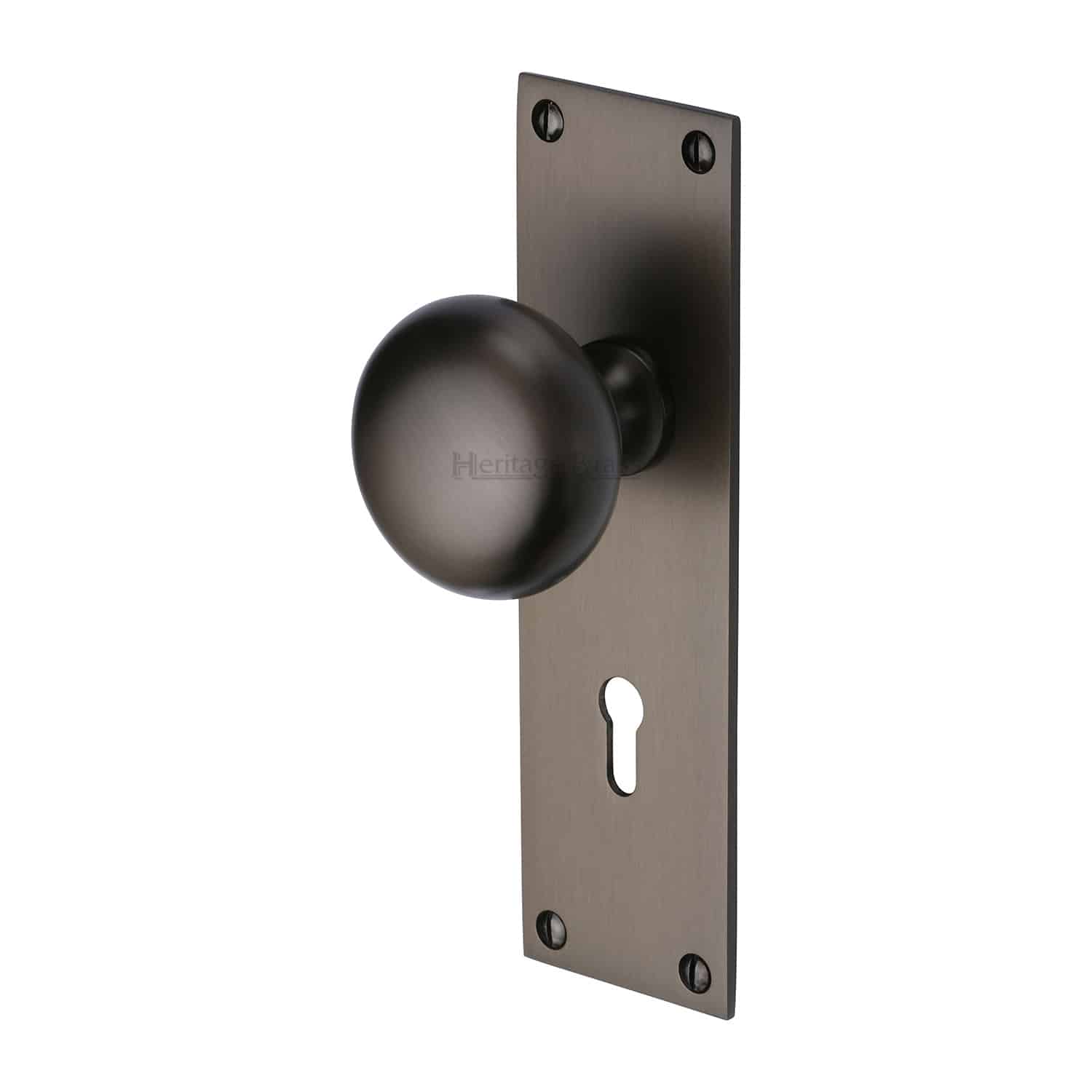 Heritage Brass Mortice Knob on Lock Plate Balmoral Design Matt Bronze finish