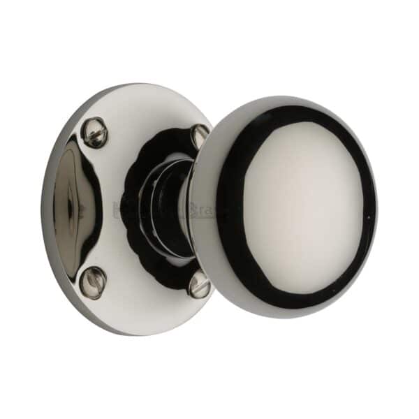 Heritage Brass Mortice Knob on Rose Kensington Design Polished Nickel finish