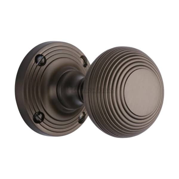 Heritage Brass Mortice Knob on Rose Reeded Design Matt Bronze finish