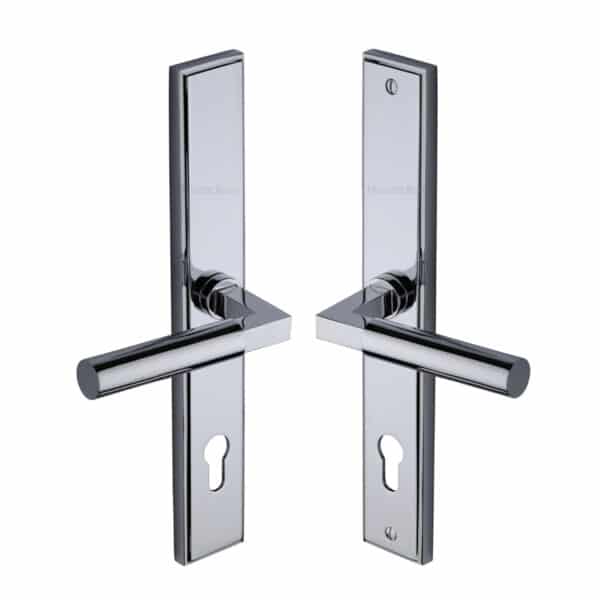 Heritage Brass Multi-Point Door Handle Lever Lock Bauhaus LH Design Polished Chrome Finish