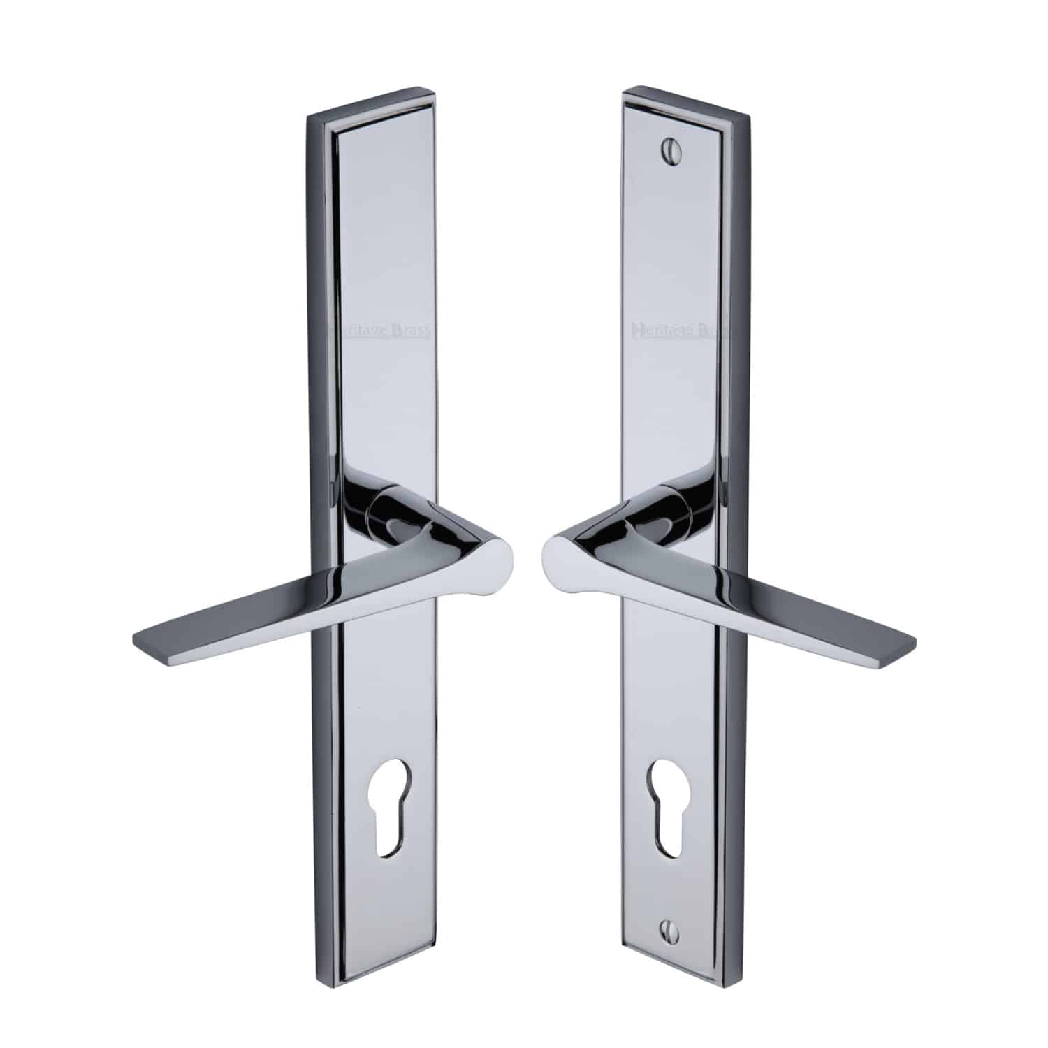 Heritage Brass Multi-Point Door Handle Lever Lock Gio LH Design Polished Chrome Finish