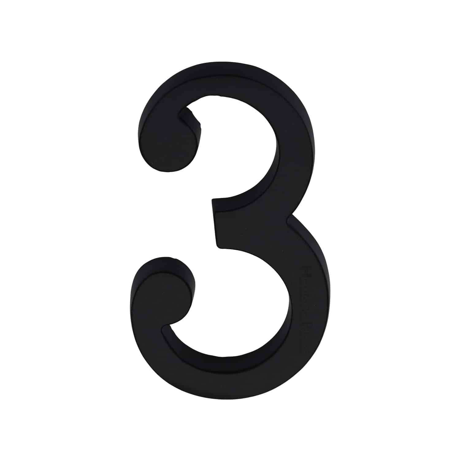 Heritage Brass Numeral 3 Concealed Fix 76mm (3″) Matt Black