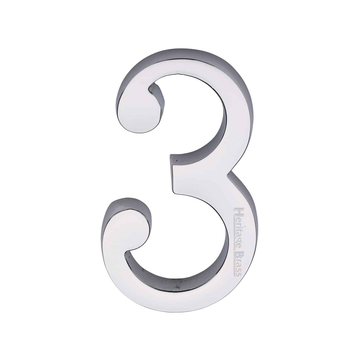Heritage Brass Numeral 3 Concealed Fix 76mm (3″) Polished Chrome finish