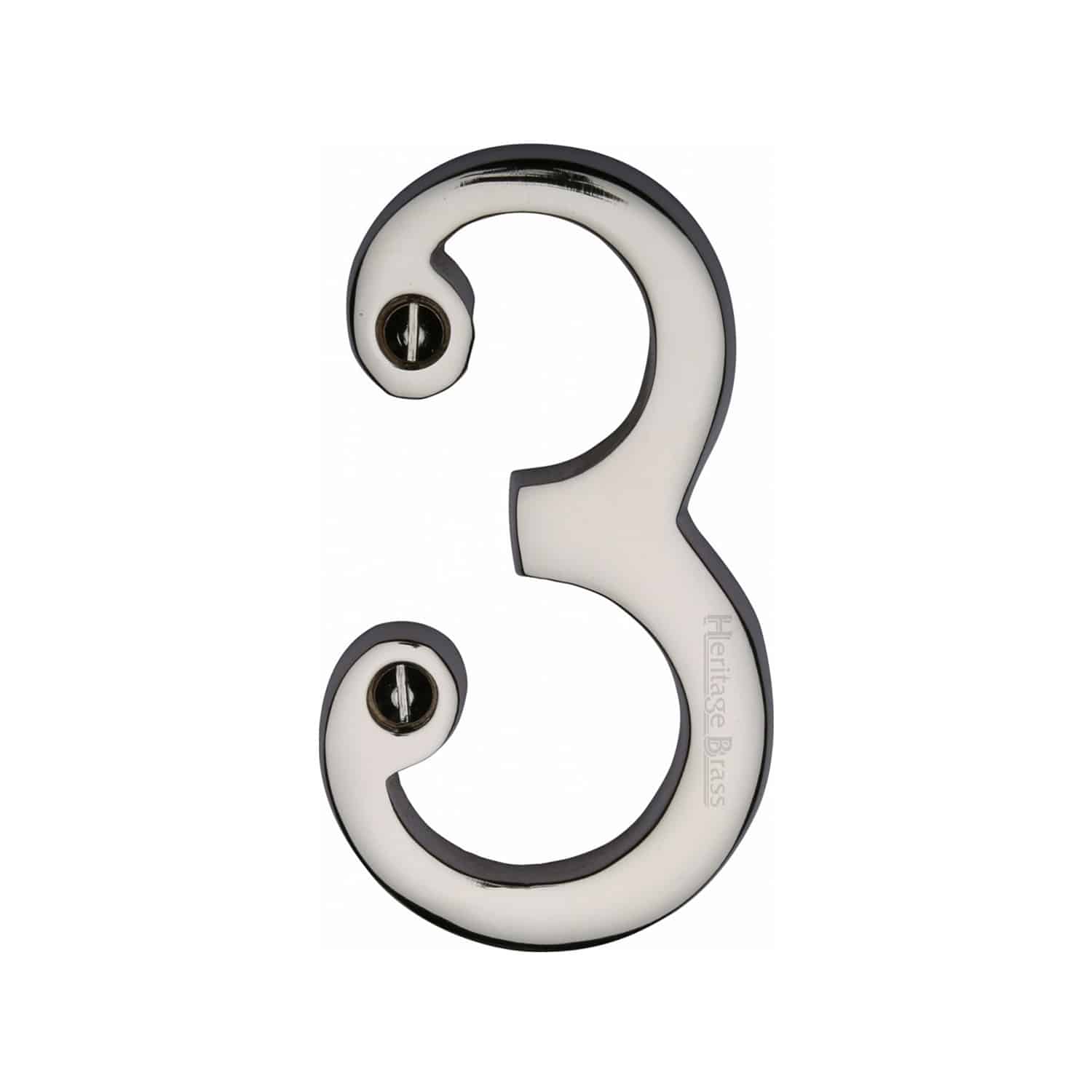 Heritage Brass Numeral 3 Face Fix 76mm (3″) Polished Nickel finish