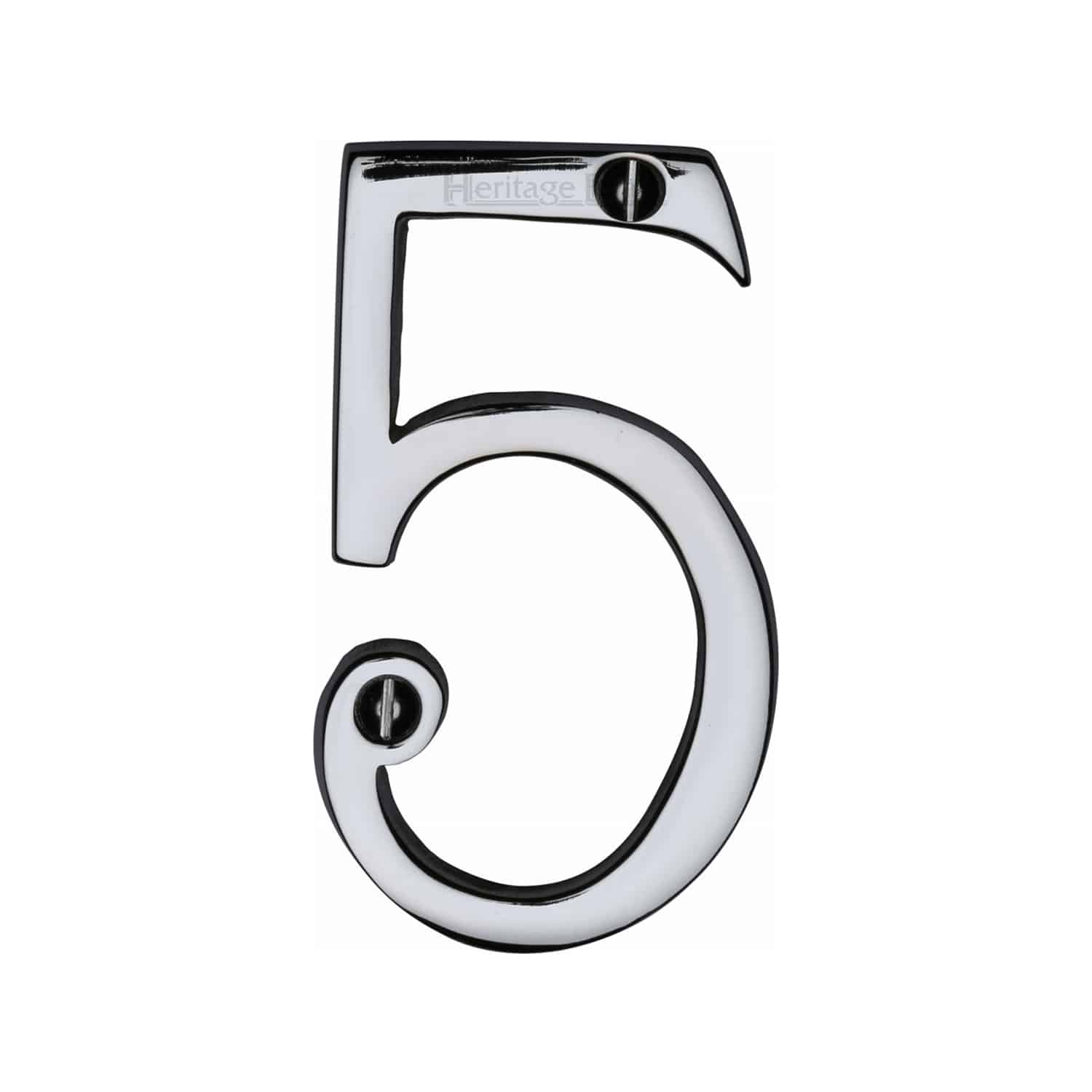 Heritage Brass Numeral 5 Face Fix 76mm (3″) Polished Chrome finish