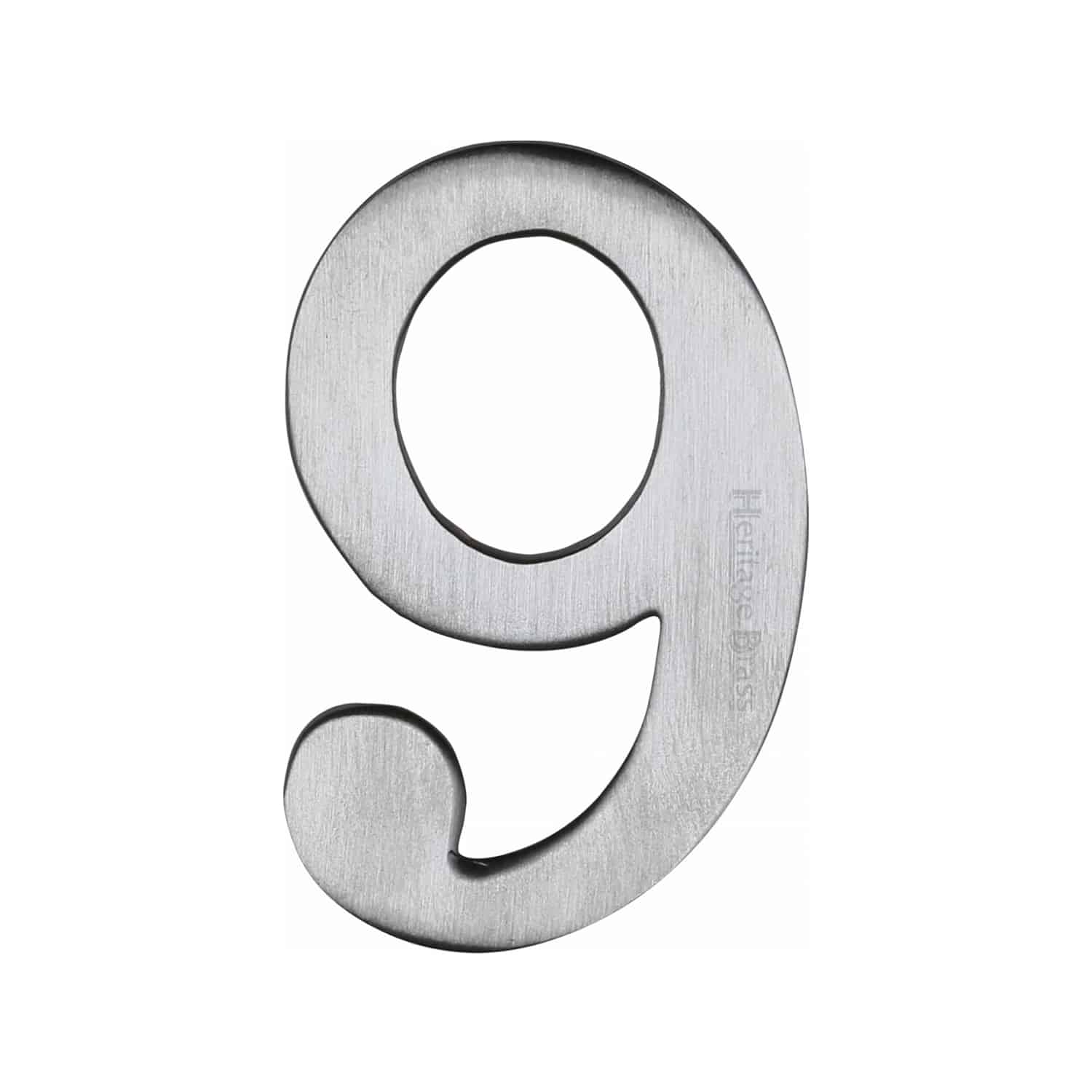 Heritage Brass Numeral 9 Self Adhesive 51mm (2″) Satin Chrome finish