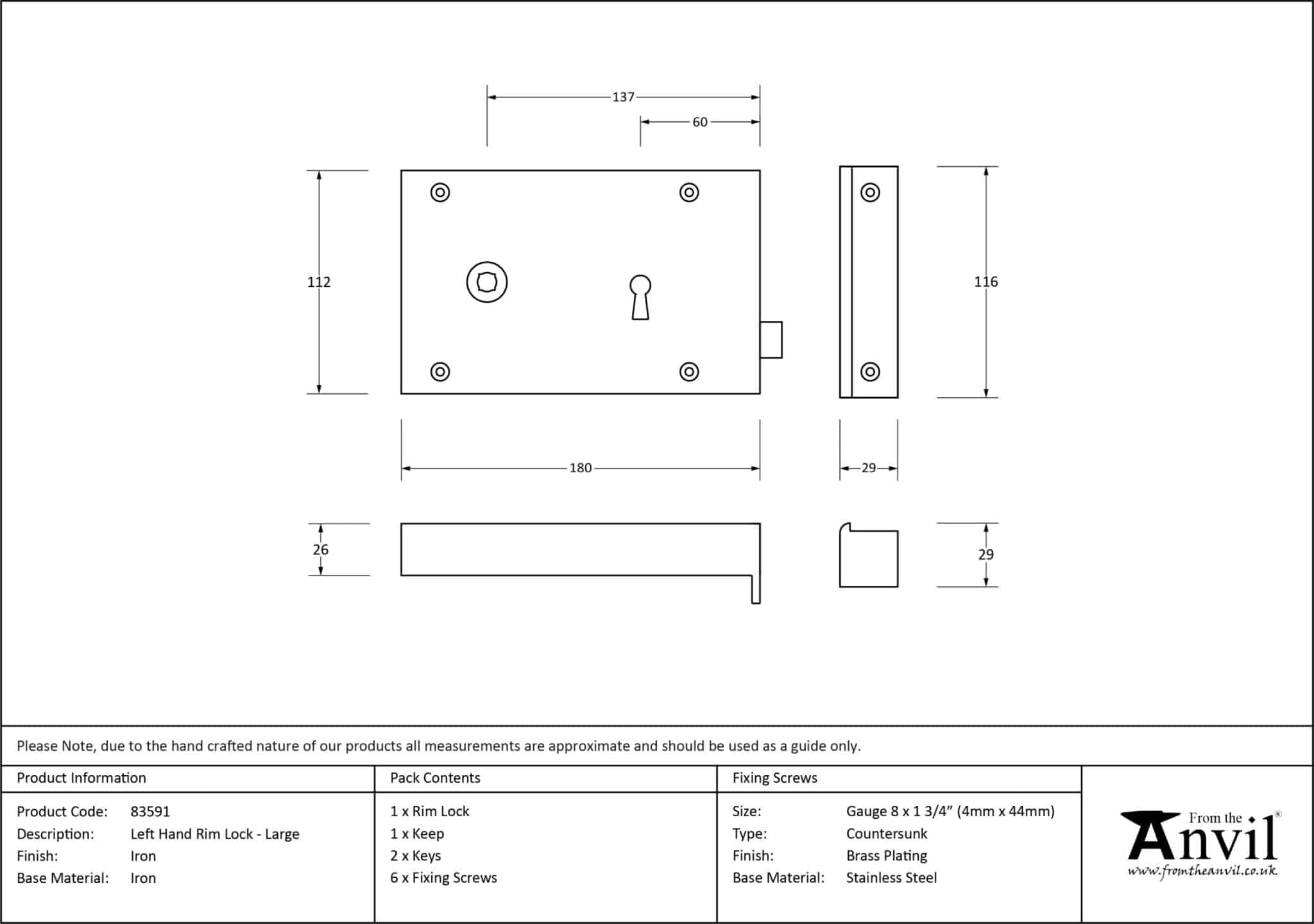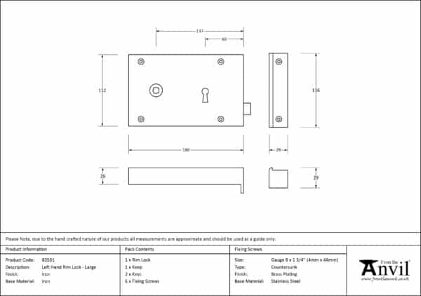 Iron Left Hand Rim Lock – Large