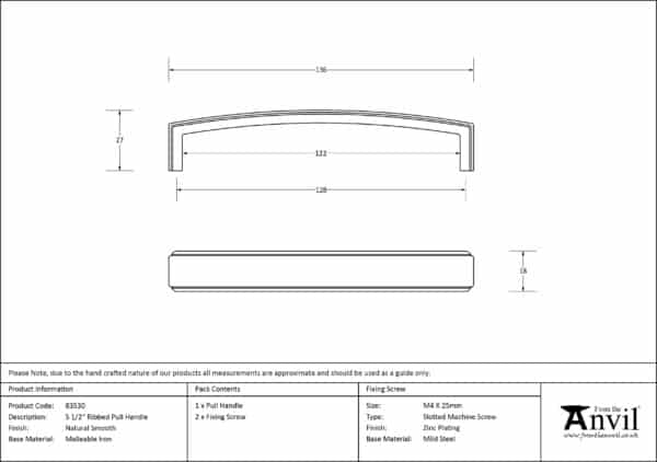 Natural Smooth 5 1/2″ Ribbed Pull Handle