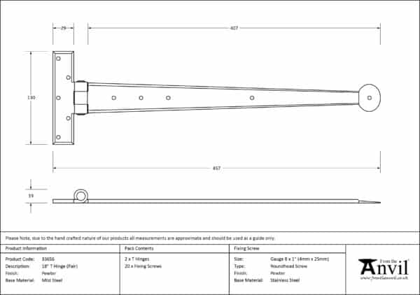 When opened a tee hinge has the appearance of a letter ‘T’. An alternative to butt hinges, tee hinges are usually used in conjunction with a suffolk latch on traditional plank doors.