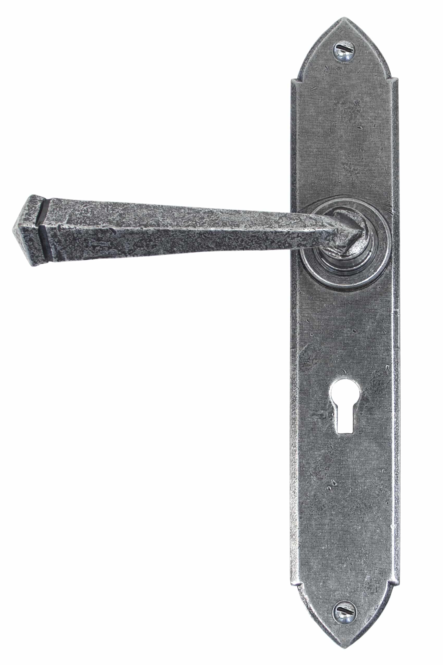 Inspired by the medieval period, the gothic range of handles were the first design we manufactured. The lever part of the handle is hammered into shape by hand and is positioned at an angle to match the gothic design of the backplate.