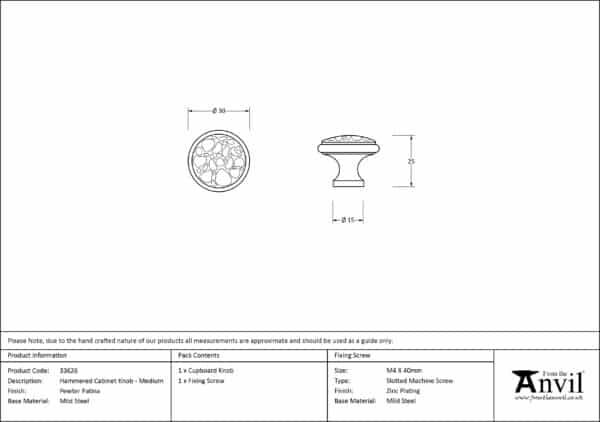The hammered cupboard knob is part of the blacksmith range of cabinet knobs.