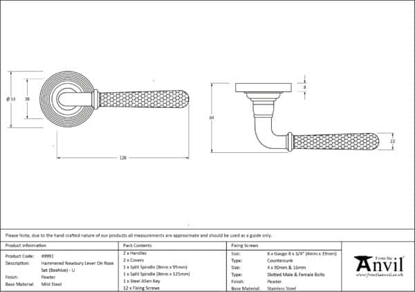 Pewter Hammered Newbury Lever on Rose Set (Beehive) – Unsprung