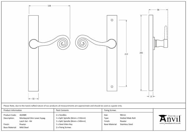 Pewter Monkeytail Slimline Lever Espag. Latch – RH