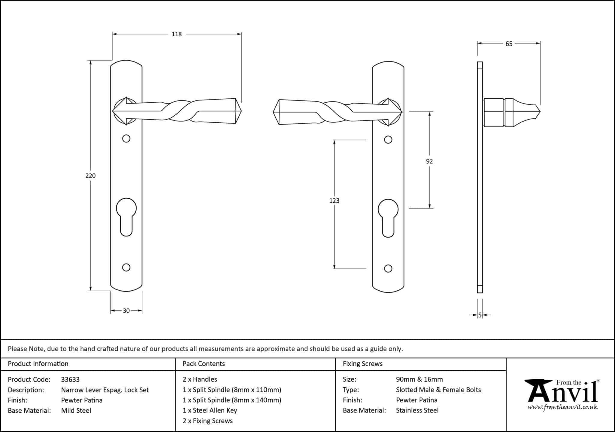 The narrow lever features a stylish twist, handforged by our skilled blacksmiths.