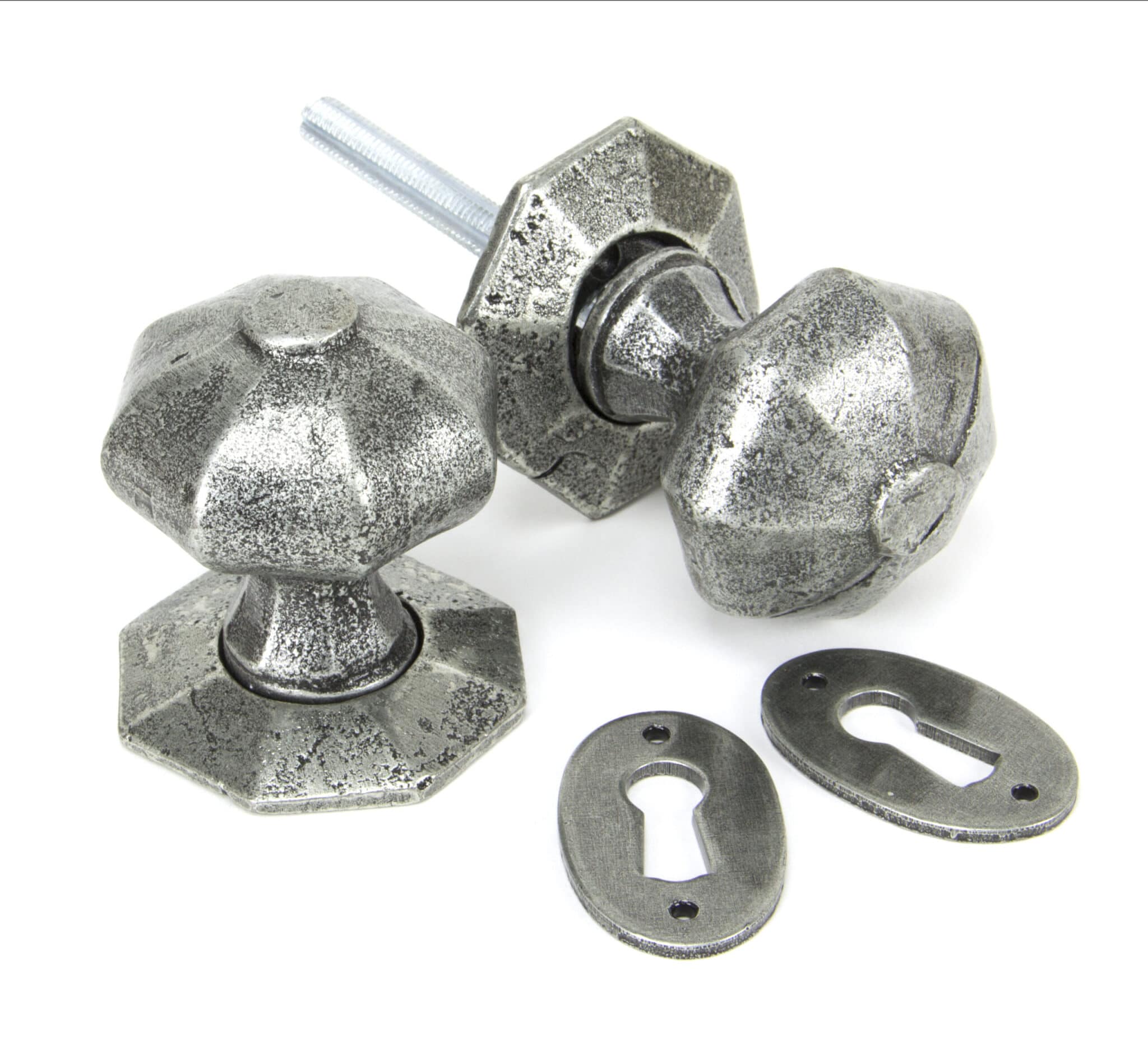 The octagonal mortice/rim knob is part of the blacksmith range of knob sets. They are supplied with loose collars to ensure they can be flush fitted to doors or alternatively used in conjunction with a rim lock.