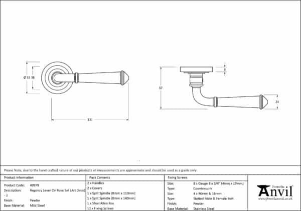 Pewter Regency Lever on Rose Set (Art Deco) – Unsprung