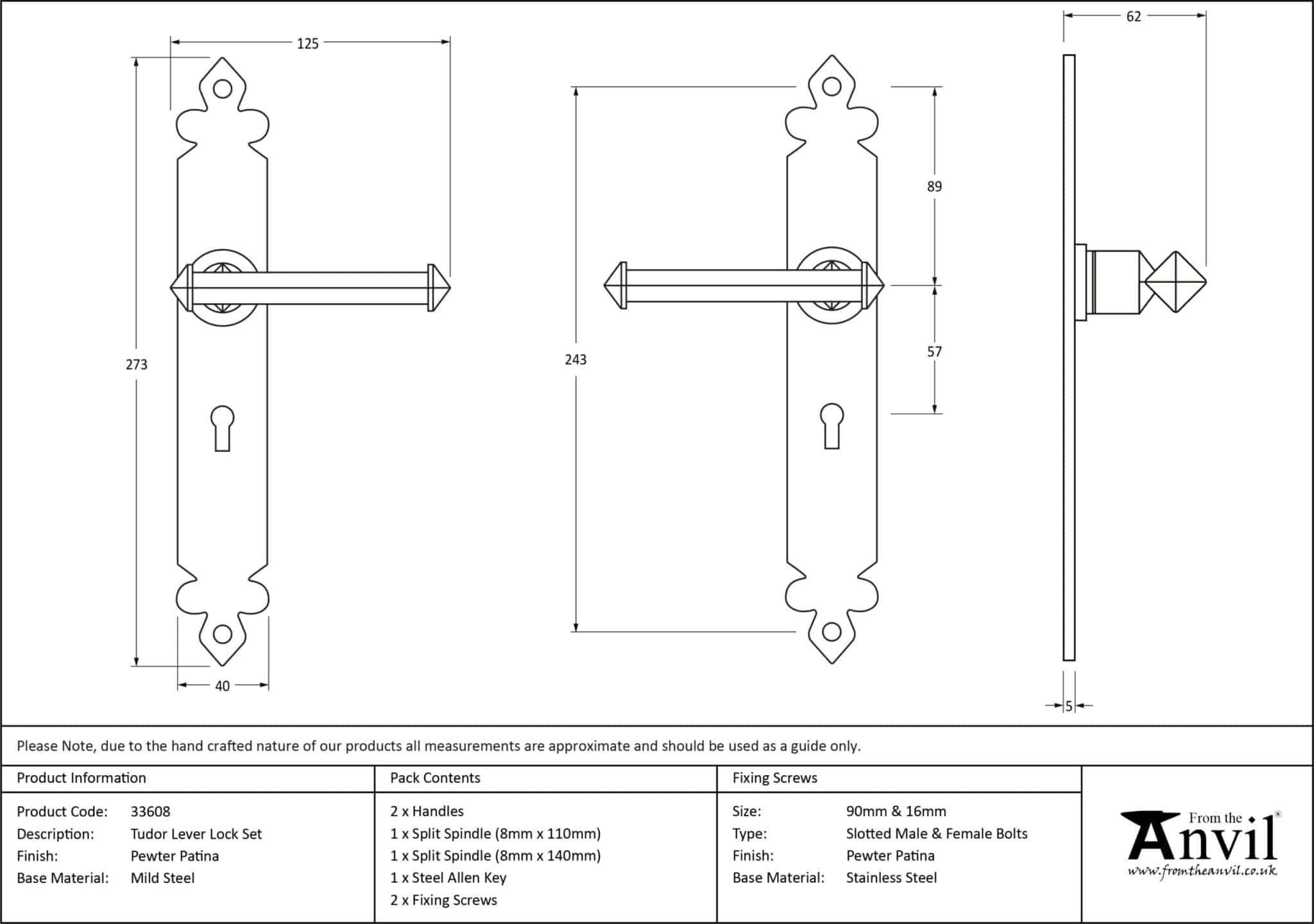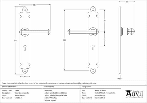 Pewter Tudor Lever Lock Set