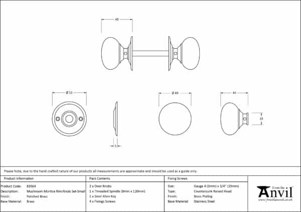 Polished Brass Mushroom Mortice/Rim Knob Set
