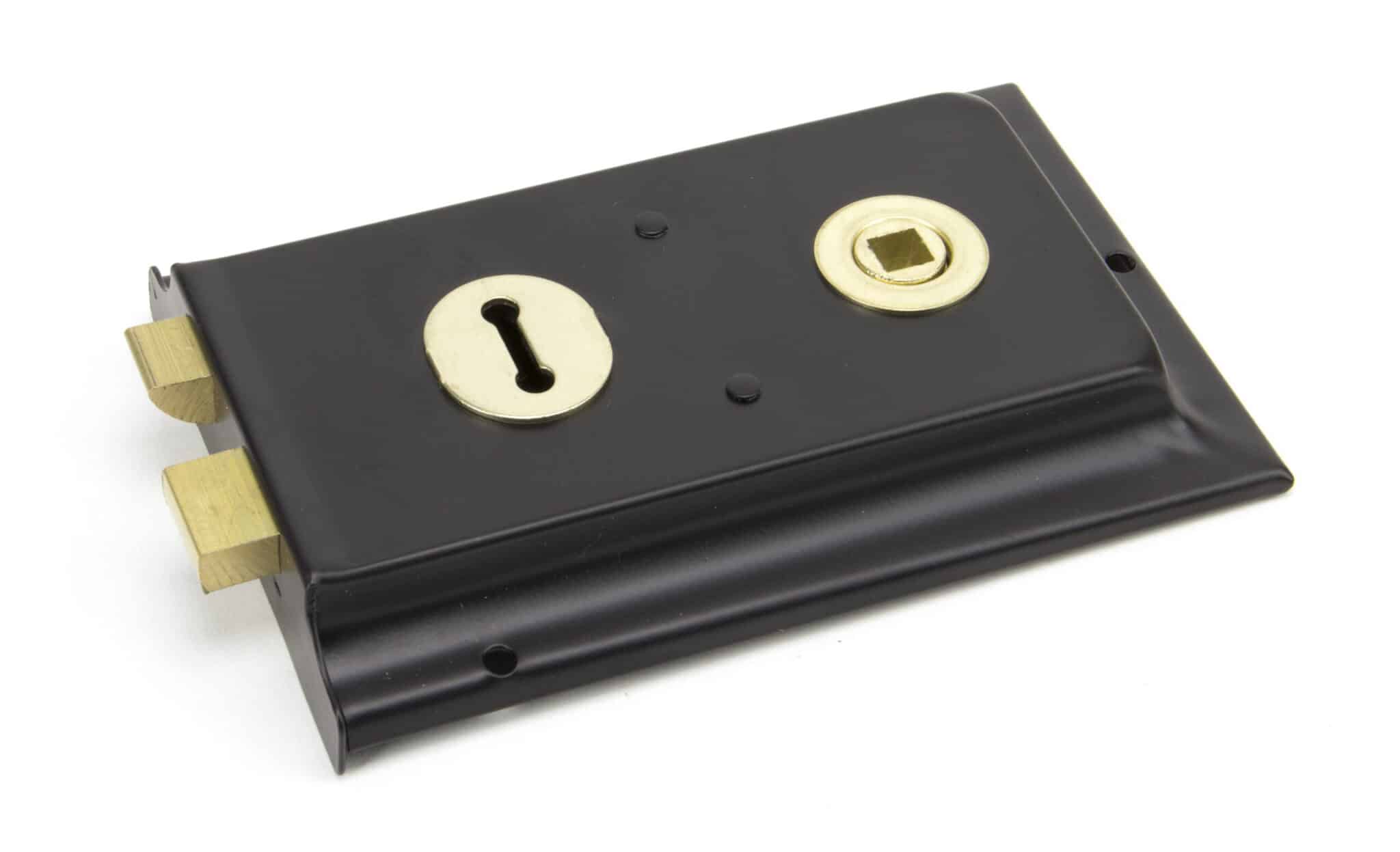 Rim locks are fitted to the surface of the door rather than being morticed in, along with a surface mounted keep that should be fitted to the door frame.