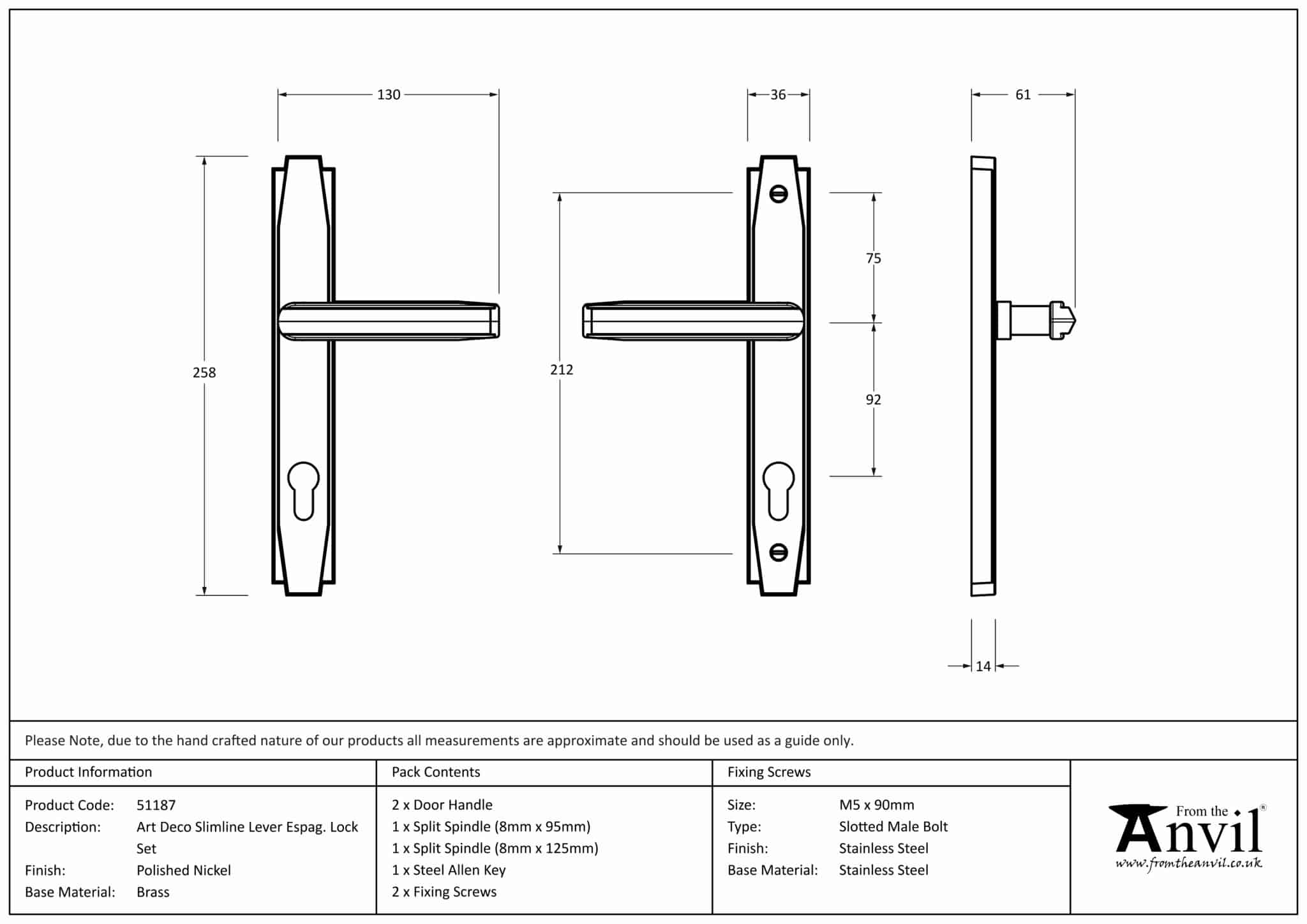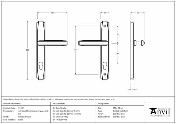 Polished Nickel Art Deco Slimline Lever Espag. Lock Set