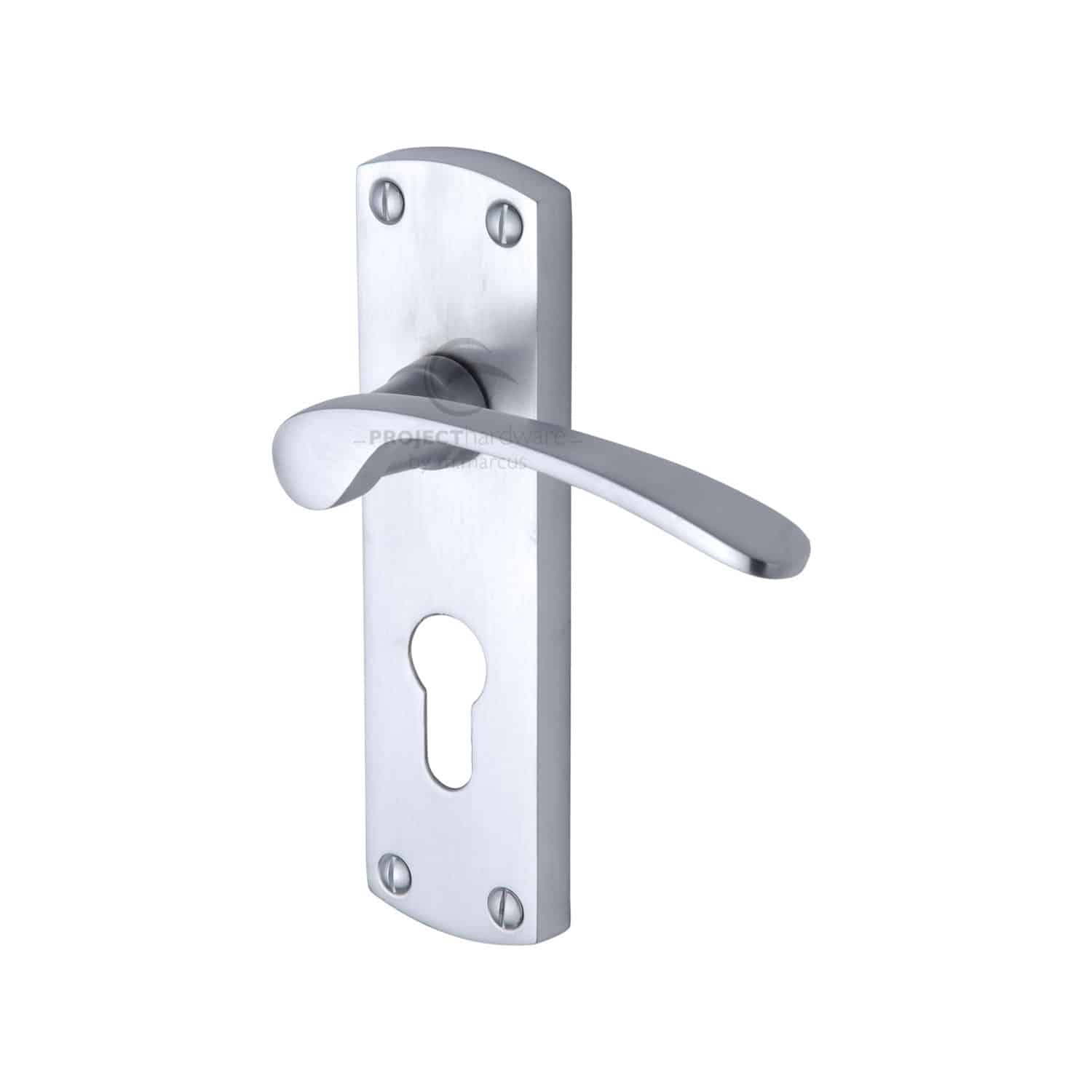 Project Hardware Door Handle for Euro Profile Plate Luca Design Satin Chrome Finish