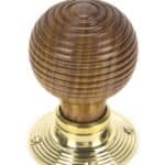 Rosewood & Polished Brass Beehive Mortice/Rim Knob Set