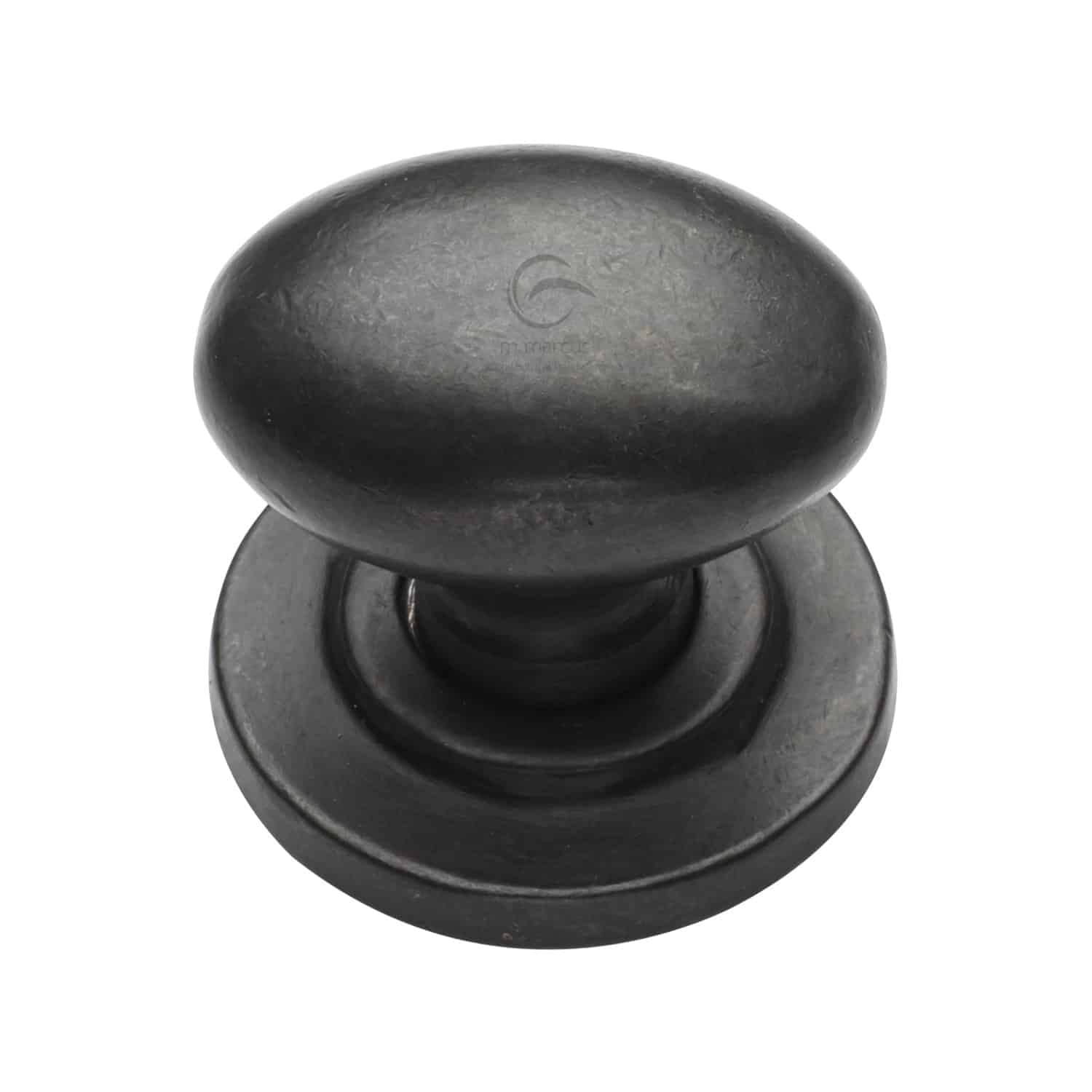 Rustic Dark Bronze Cabinet Knob Oval Design on Rose 38mm