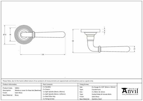 Satin Brass Newbury Lever on Rose Set (Beehive)