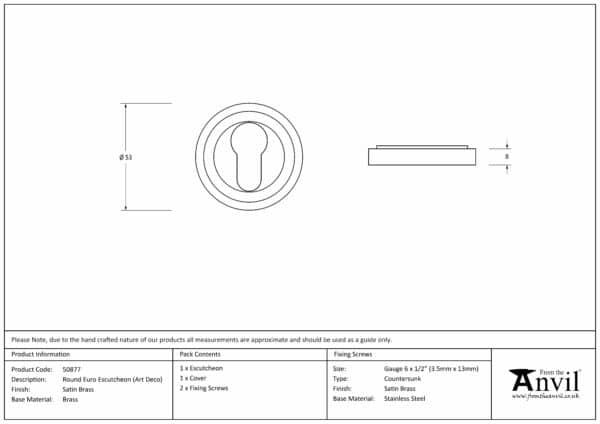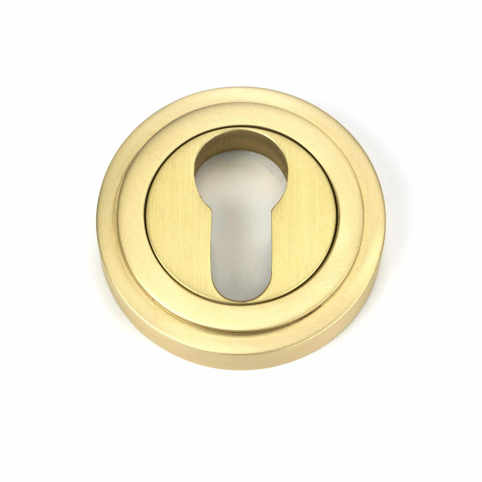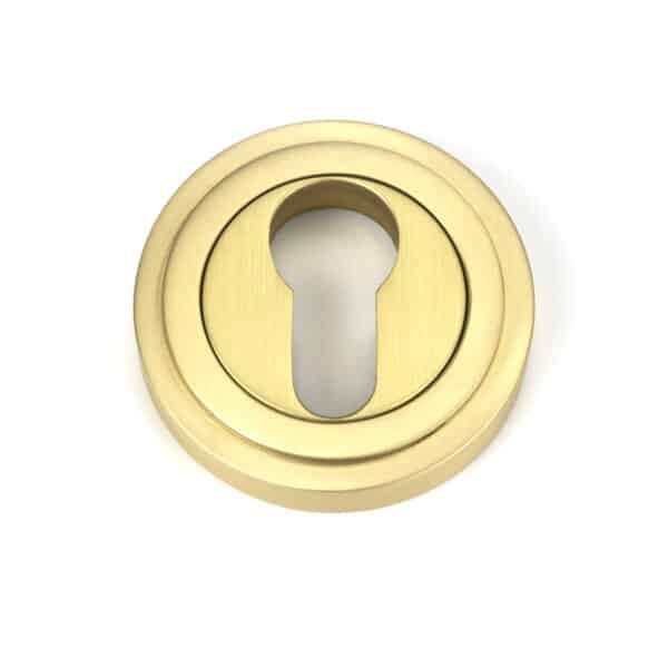 Satin Brass Round Euro Escutcheon (Art Deco)