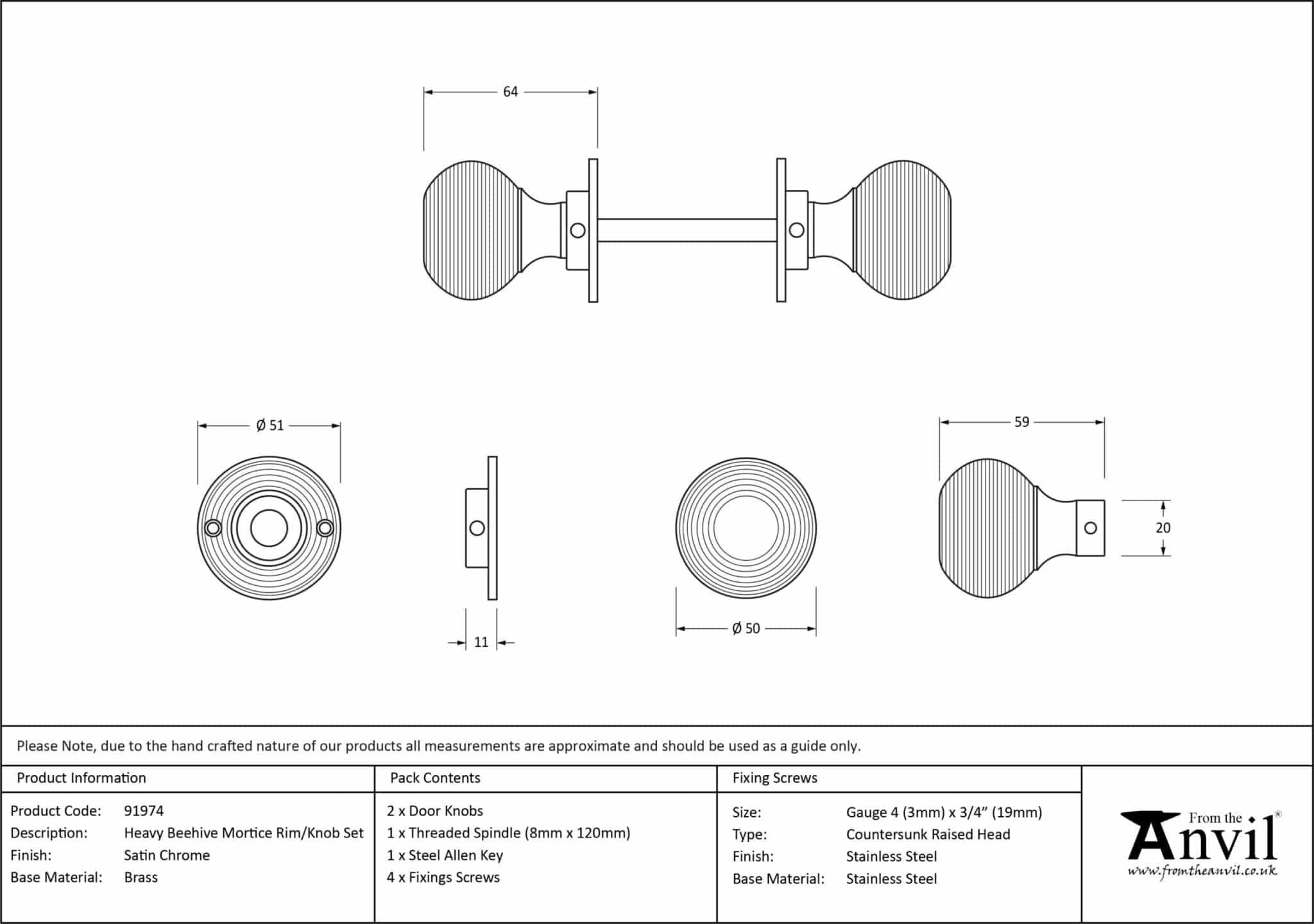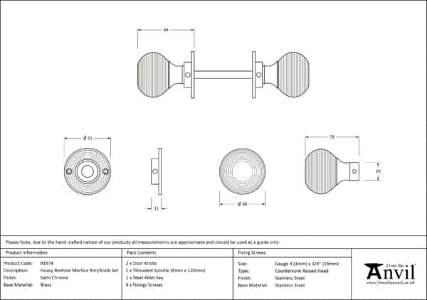 Satin Chrome Heavy Beehive Mortice/Rim Knob Set