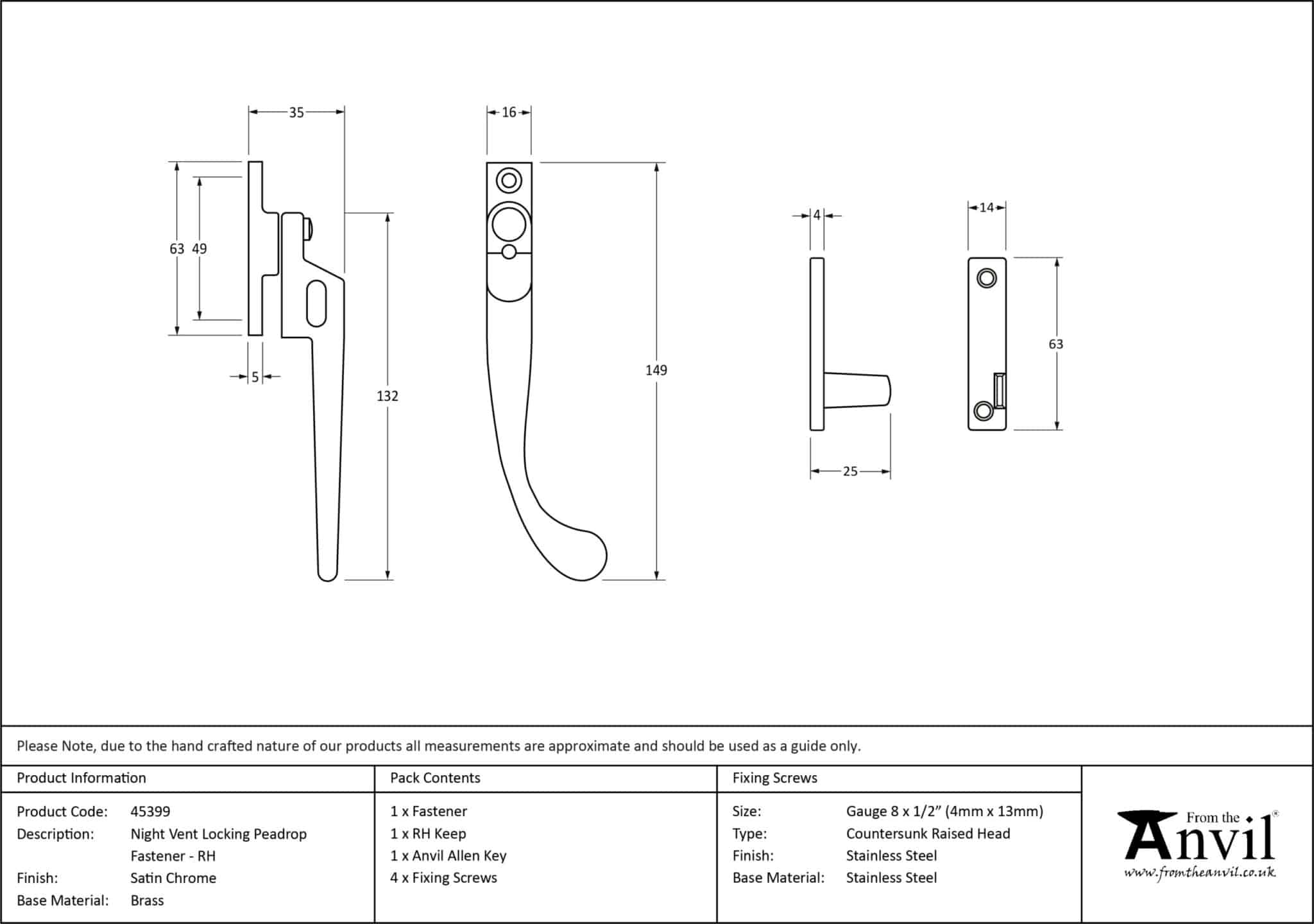 Satin Chrome Night-Vent Locking Peardrop Fastener – RH