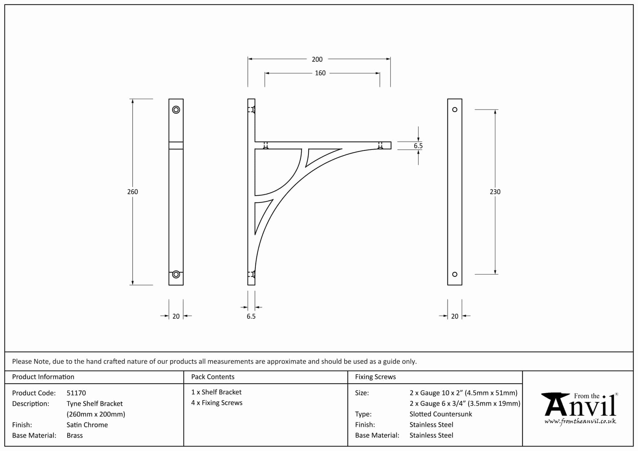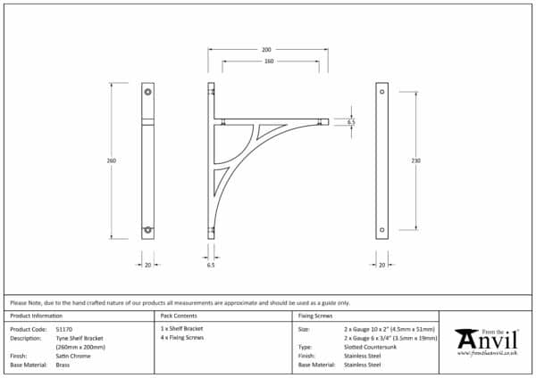Satin Chrome Tyne Shelf Bracket (260mm x 200mm)