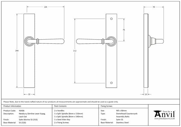 Satin Marine SS (316) Newbury Slimline Lever Espag. Latch Set