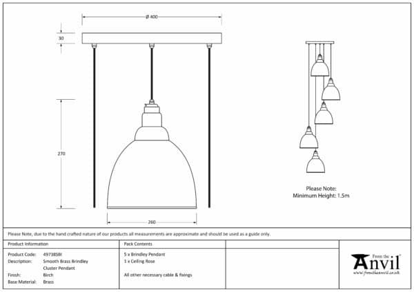 Smooth Brass Brindley Cluster Pendant in Birch