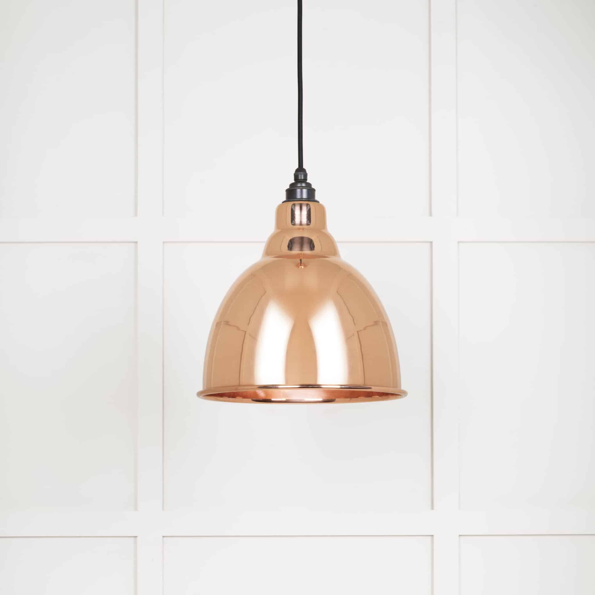 Our Smooth Copper pendants are spun from solid copper. This finish produces a subtle, warm light that is best balanced by using a cooler / brighter bulb type.