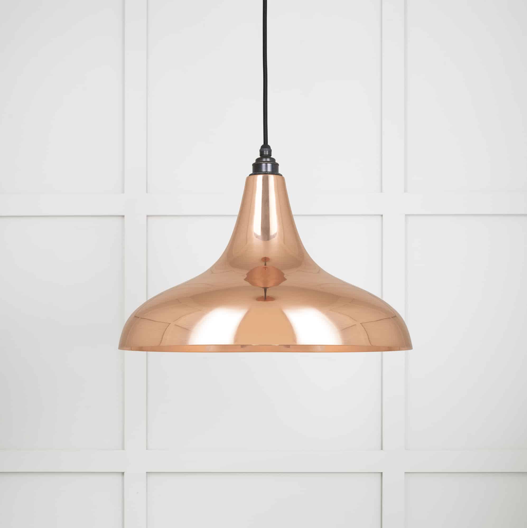 Our Smooth Copper lights are spun from solid copper. This finish produces a subtle, warm light that is best balanced by using a cooler/brighter bulb type.
