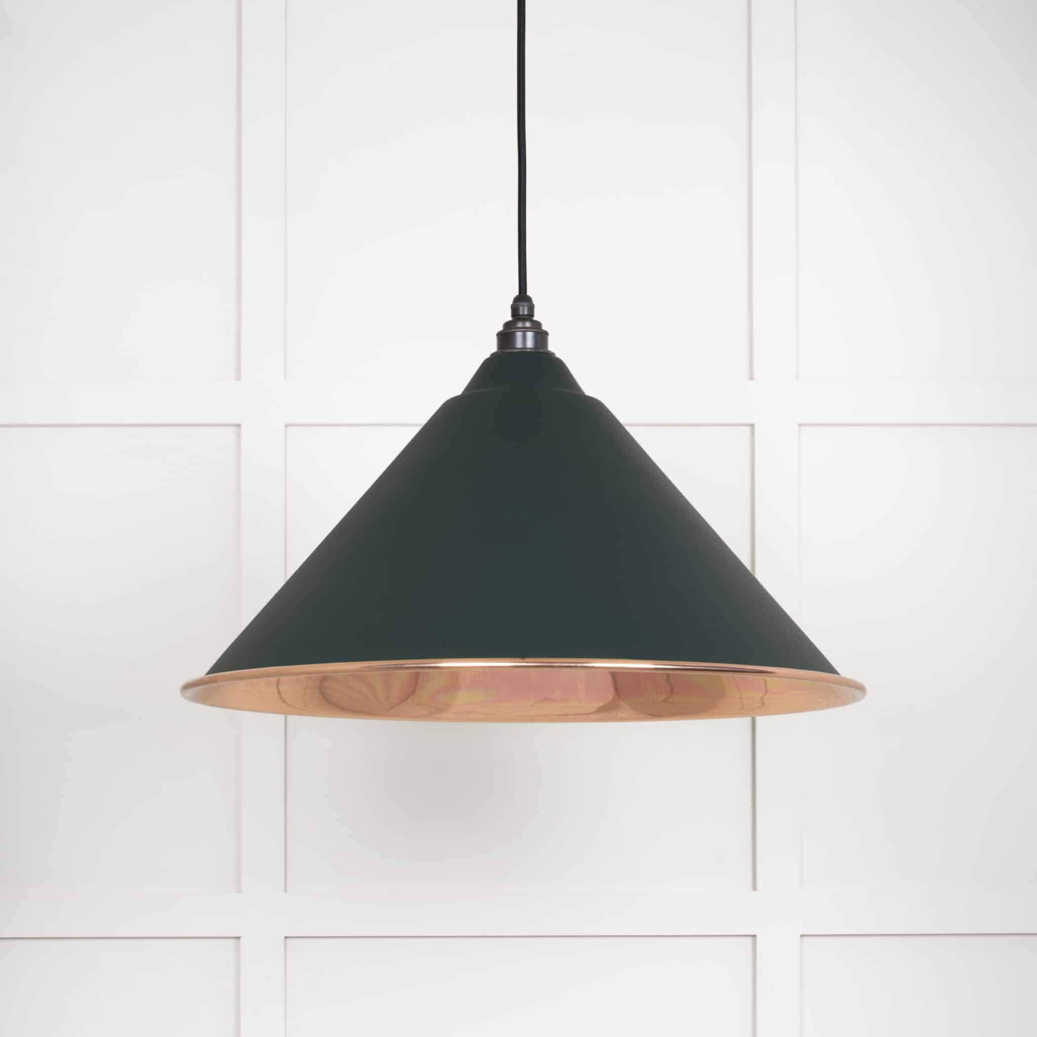 Our Smooth Copper pendants are spun from solid copper. This finish produces a subtle, warm light that is best balanced by using a cooler / brighter bulb type.