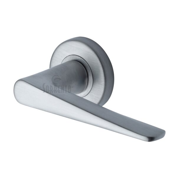 Sorrento Door Handle Lever Latch on Round Rose Amalfi Design Satin Chrome Finish