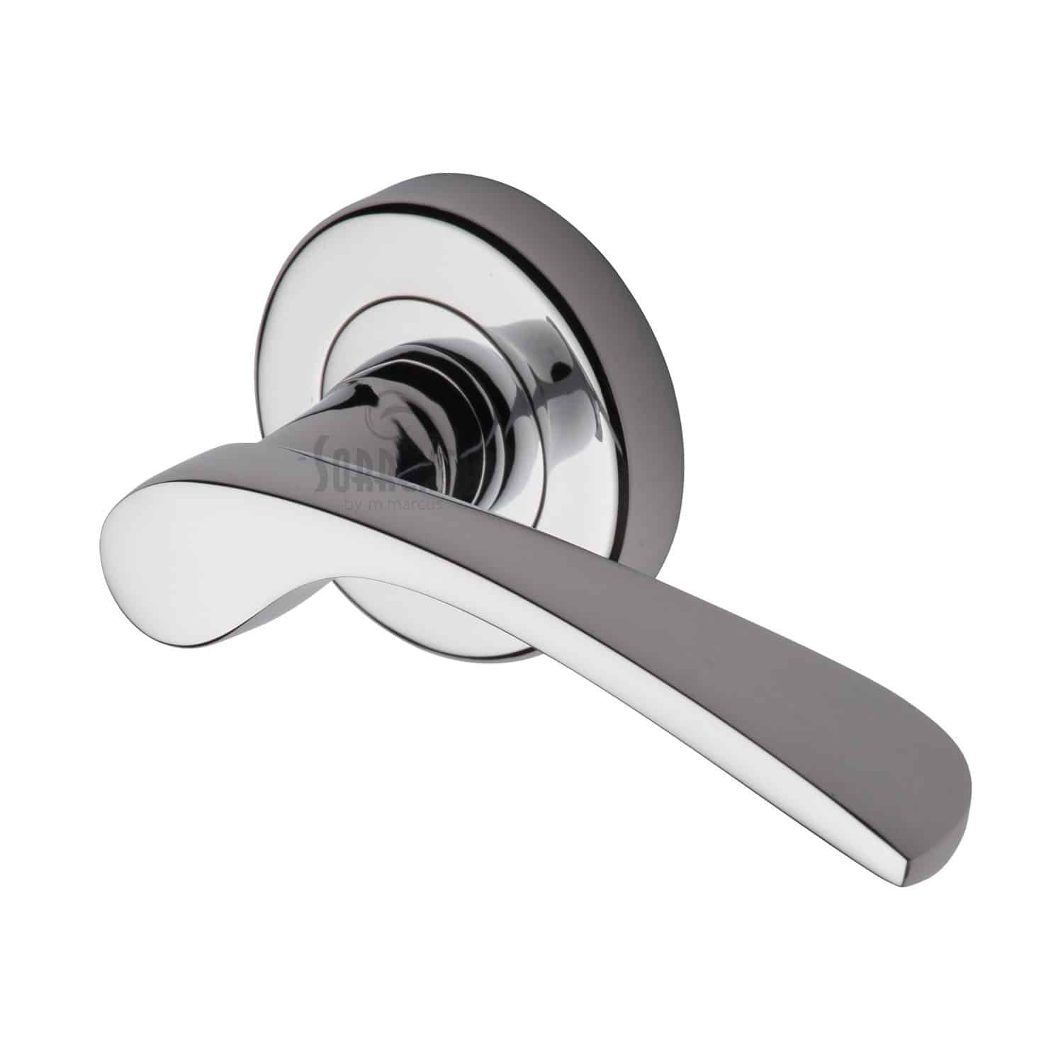 Sorrento Door Handle Lever Latch on Round Rose Arcadia Design Polished Chrome Finish