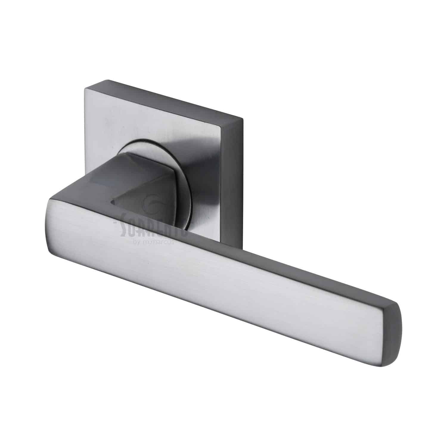 Sorrento Door Handle Lever Latch on Round Rose Axis Design Satin Chrome Finish