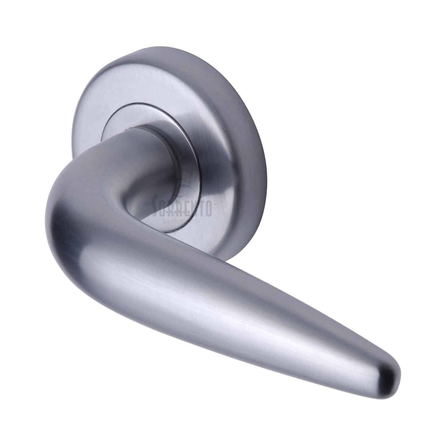 Sorrento Door Handle Lever Latch on Round Rose Goccia Design Satin Chrome Finish