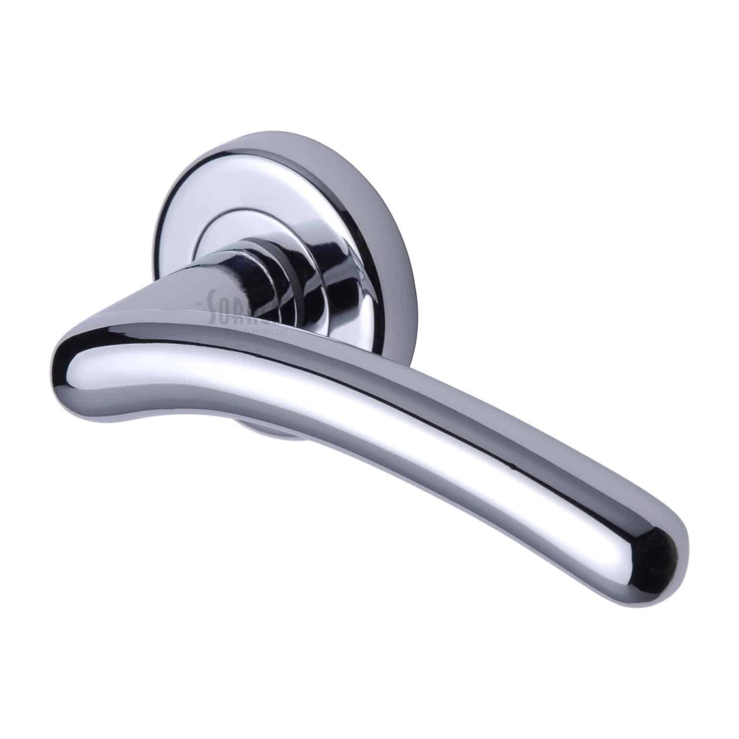 Sorrento Door Handle Lever Latch on Round Rose Ico Design Polished Chrome Finish