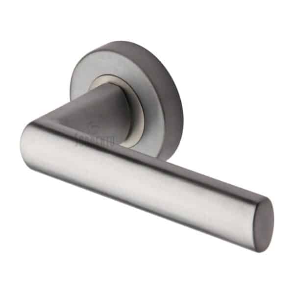 Sorrento Door Handle Lever Latch on Round Rose Milan Design Satin Chrome Finish
