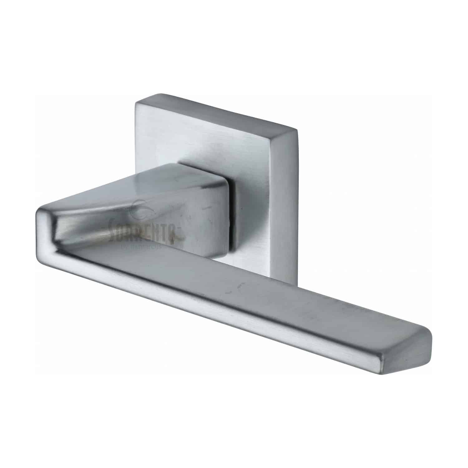 Sorrento Door Handle Lever Latch on Square Rose Laguna Square Design Satin Chrome Finish